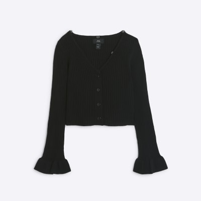 Girls black faux fur collar cardigan River Island Very well made.